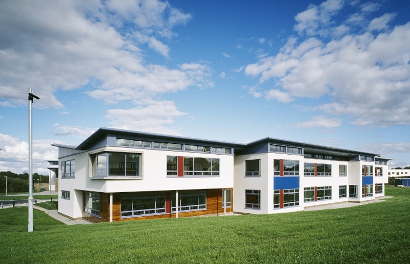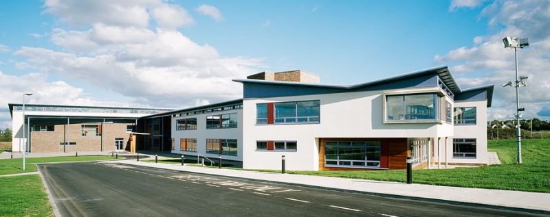 1st Second Level School in Ireland to be Certified Airtight. The school includes high spec laboratories and, apart from the high quality building, the siteworks and utilities provided include 5 basketball / volleyball courts; the soccer pitch; a GAA game pitch and a running track, and an integral Sports Hall.