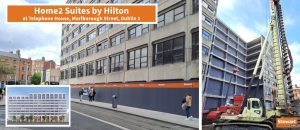 We are making great progress on our Hilton Home2 Suites Aparthotel at Telephone House, Dublin 1. Hoarding is in place along Marlborough Street and the demolition phase is completed to the rear of the building with CFA piling underway. When completed, this 290-bed Aparthotel will span 10 floors over basement and will be the first of Hilton’s Home2 Suites brand in Europe.